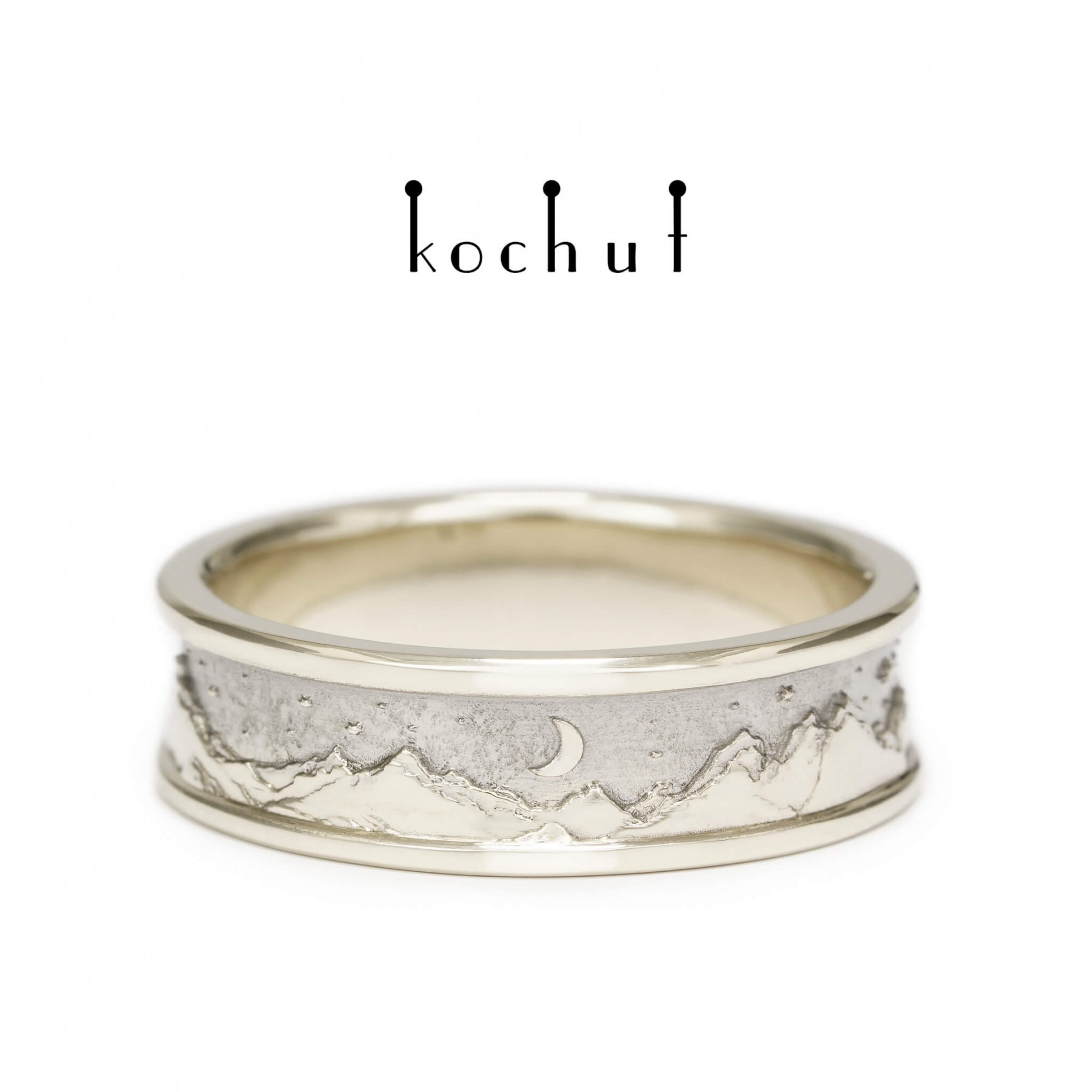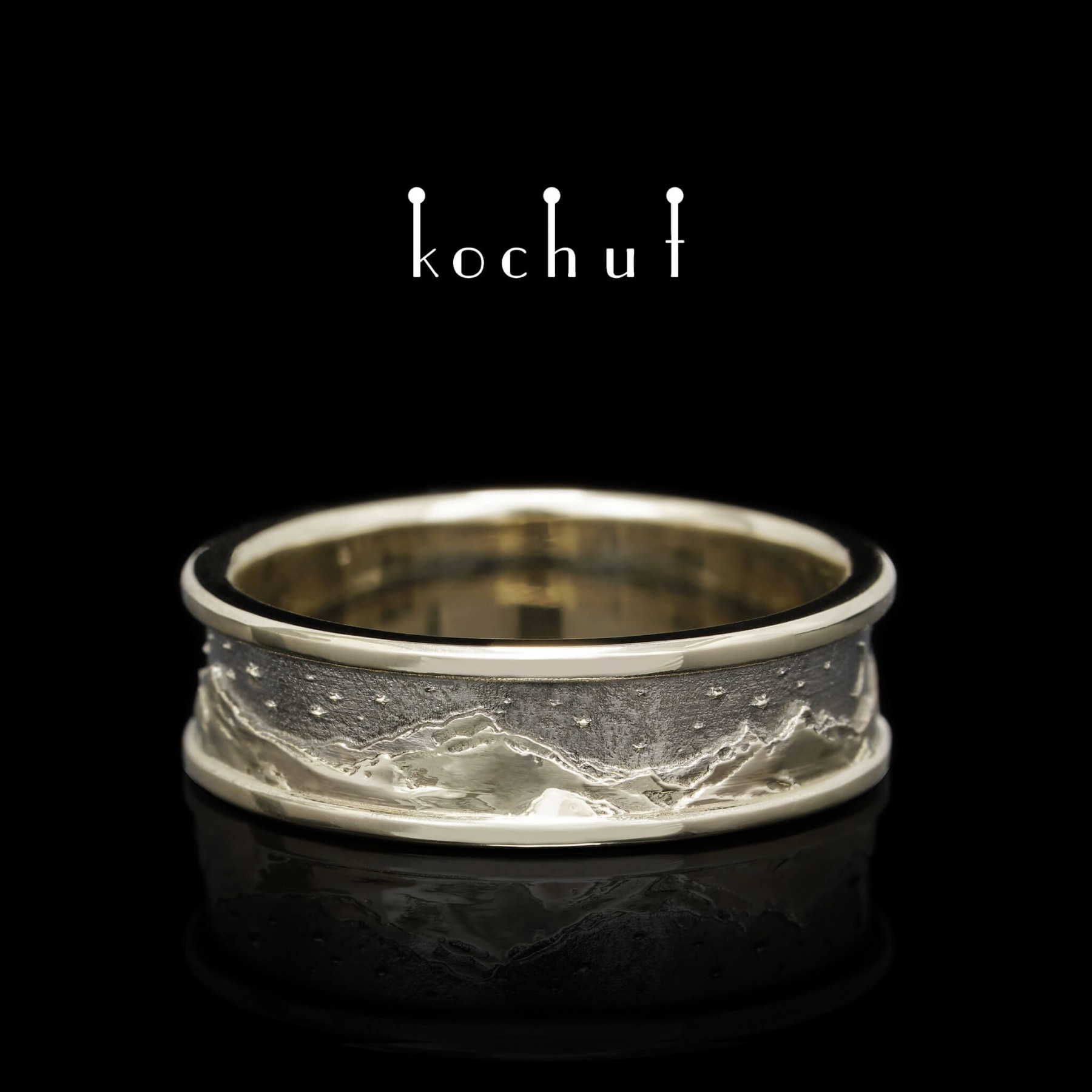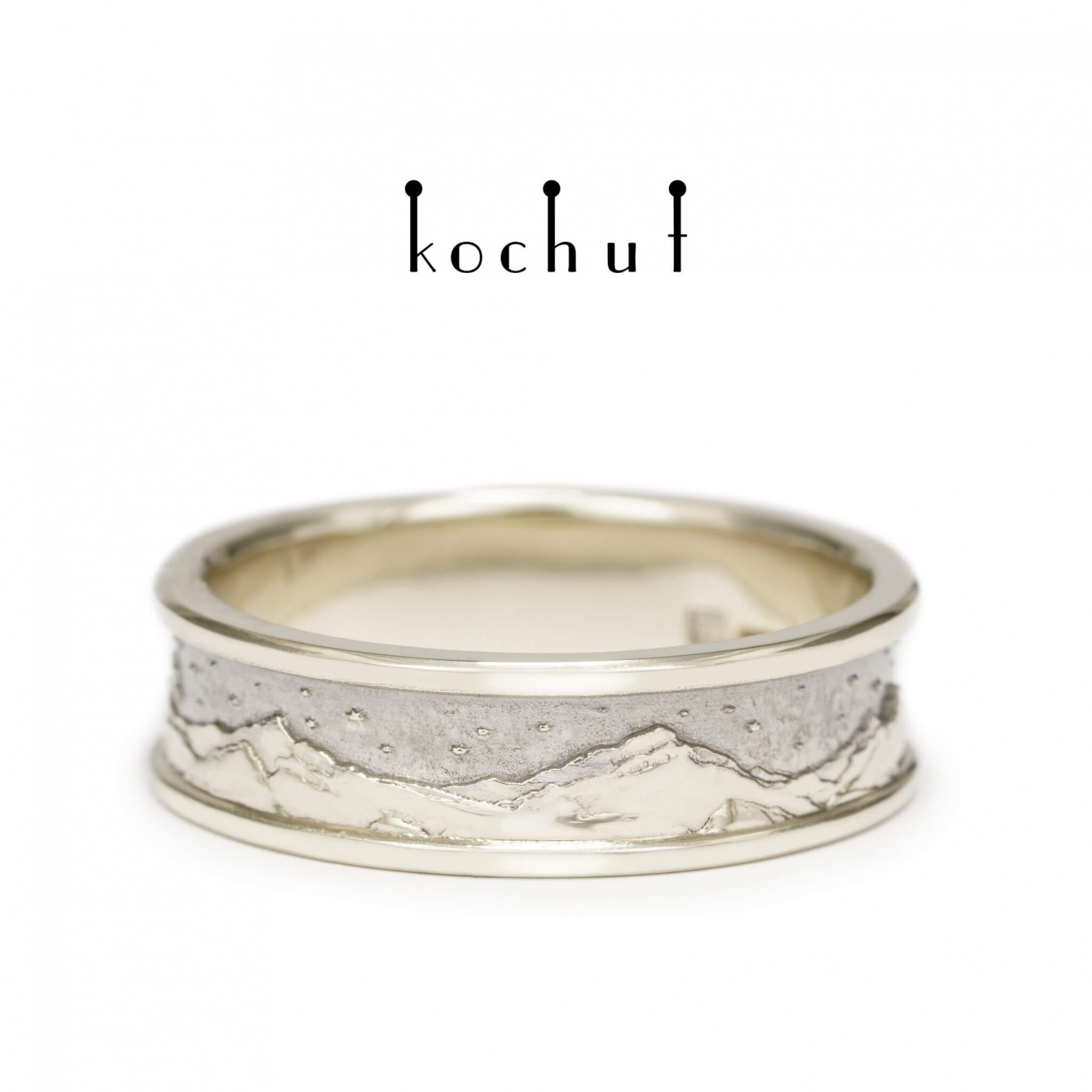 Life is a series of pictures and events passing before our eyes. The morning replaces the change of day, the dawn over the night steps quietly in barefoot. Sun puddles move briskly on one’s shoulder, like the delicate rose petals that have fallen on the wet asphalt. Life is beautiful, because it breathes, rushes, cries and laughs. And it is especially beautiful in the mountains. Have you ever woken up in the mountains when a mist greets you with dew and fresh coolness? When wet leaves make a path for you and the dawn humbly fades behind the gray wall of the morning sky?Or probably, you happened to see the snow-capped mountains behind the hills when going to work in the morning? Peaks are the purest and brightest creations on the earth, for the reason of being the closest to heaven. And you are getting closer to the heaven ladder when you find yourself on top of a mountain. The air gets thicker, taking your breath away. The eyes get rid of urban fog and eagerly enjoy the view of the sun and stars. The feeling of conquering the summit may be compared to love. Happiness runs in your veins; the bright light in the eyes and delicate enlightenment of consciousness. Everything is simple and beautiful. This is how you feel when in love. The beauty of every moment stays in your heart forever. And you realise that love is the only truth. Being at the peak of love means getting closer to heaven, reaching the divine at its closest. When a man is in love, he becomes great. Mountains call only those, who have souls of the same majesty. And love is like a rare flower of a sunny violet color, growing on the very top of the mountain and requires courage to get it. We designed the whole collection of the «Peaks of Love» rings. Nature, human and love — the form and meaning of the life cycle, the eternal triangle, the mystery of a soul. The wedding ring is created for lovers, who are lifted to the heaven and sun on the wings of love. It is made for the people who are in love with the soul and nature. It is made to celebrate the greatness of love and heart.The final cost may vary depending on the size and weight.