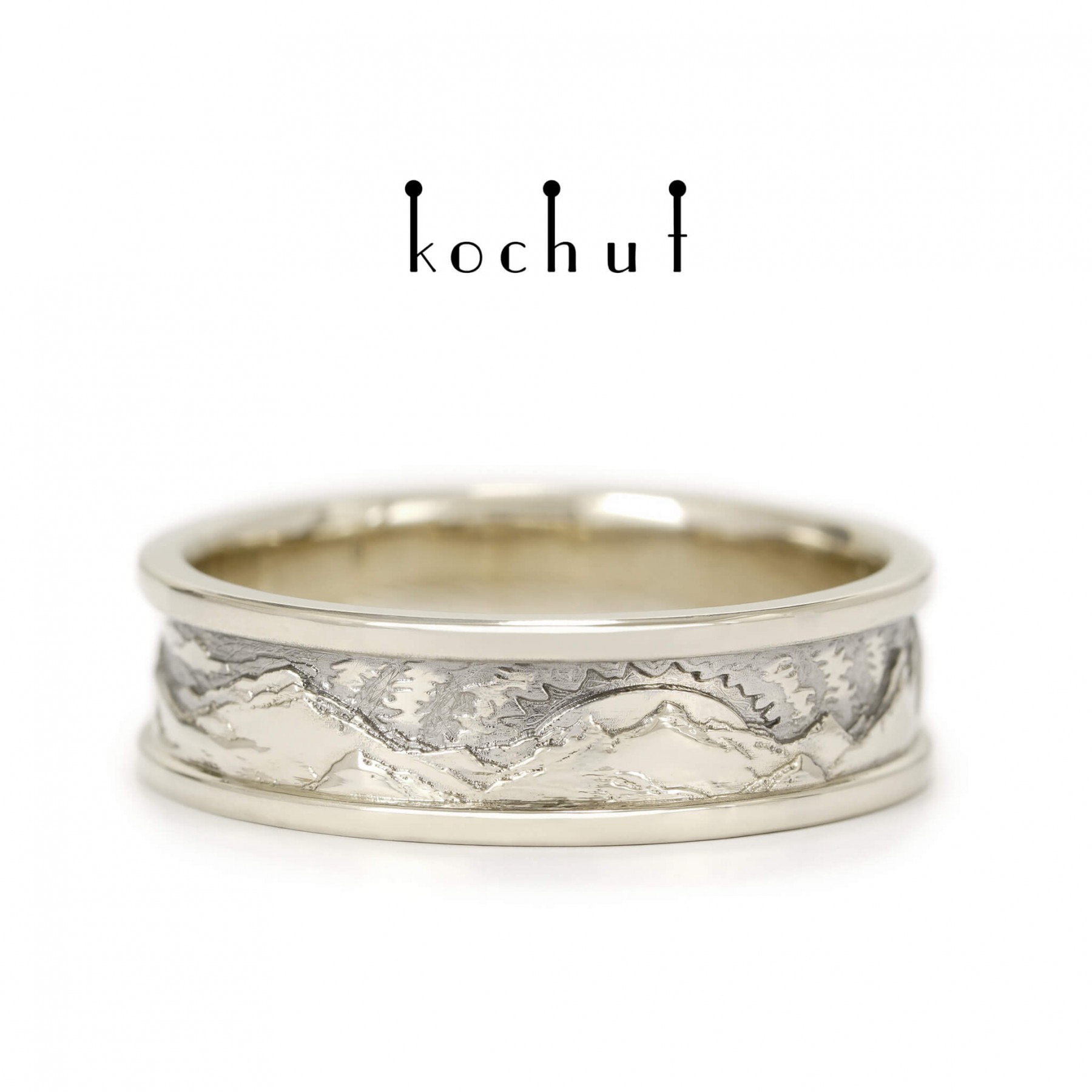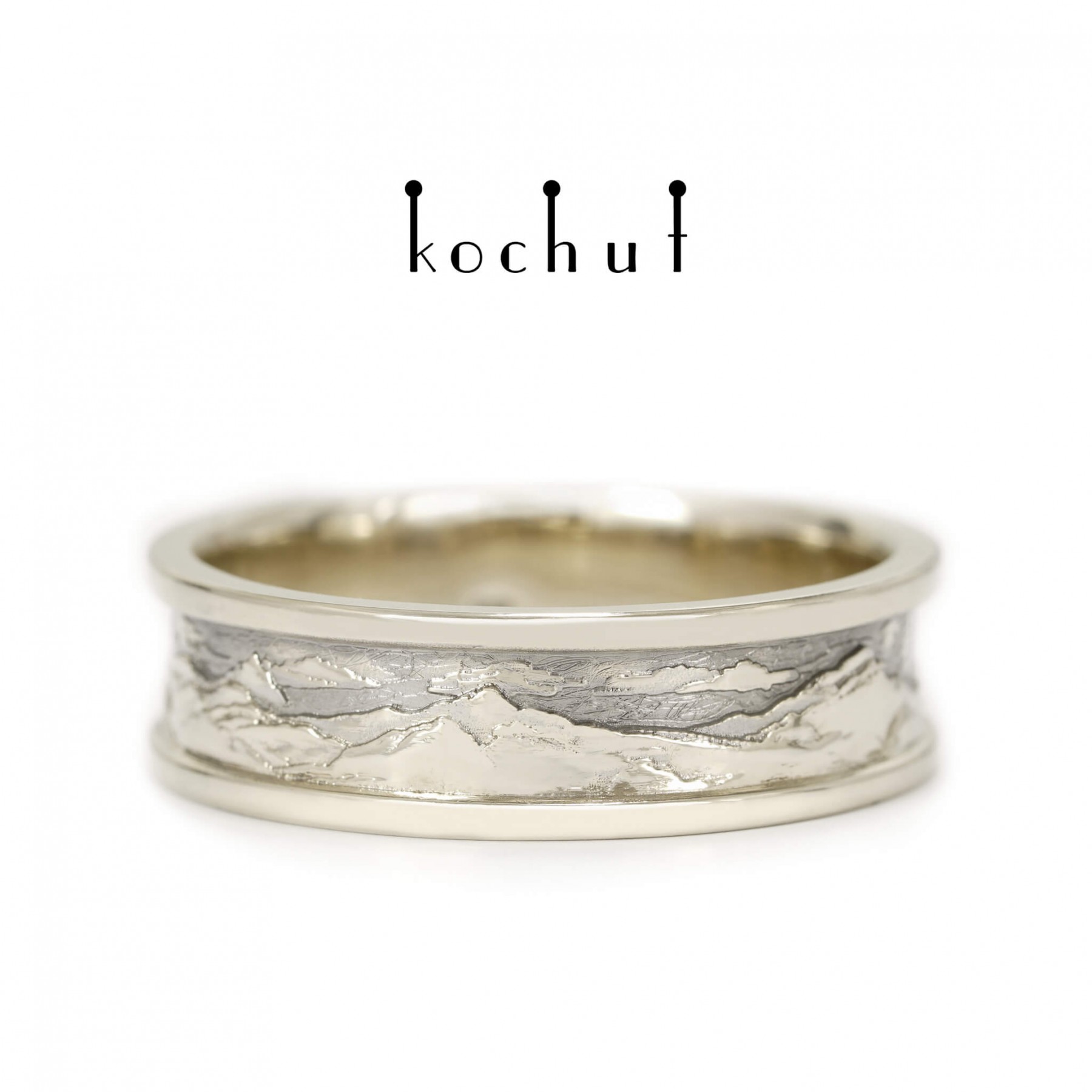 Life is a series of pictures and events passing before our eyes. The morning replaces the change of day, the dawn over the night steps quietly in barefoot. Sun puddles move briskly on one’s shoulder, like the delicate rose petals that have fallen on the wet asphalt. Life is beautiful, because it breathes, rushes, cries and laughs. And it is especially beautiful in the mountains. Have you ever woken up in the mountains when a mist greets you with dew and fresh coolness? When wet leaves make a path for you and the dawn humbly fades behind the gray wall of the morning sky?Or probably, you happened to see the snow-capped mountains behind the hills when going to work in the morning? Peaks are the purest and brightest creations on the earth, for the reason of being the closest to heaven. And you are getting closer to the heaven ladder when you find yourself on top of a mountain. The air gets thicker, taking your breath away. The eyes get rid of urban fog and eagerly enjoy the view of the sun and stars. The feeling of conquering the summit may be compared to love. Happiness runs in your veins; the bright light in the eyes and delicate enlightenment of consciousness. Everything is simple and beautiful. This is how you feel when in love. The beauty of every moment stays in your heart forever. And you realise that love is the only truth. Being at the peak of love means getting closer to heaven, reaching the divine at its closest. When a man is in love, he becomes great. Mountains call only those, who have souls of the same majesty. And love is like a rare flower of a sunny violet color, growing on the very top of the mountain and requires courage to get it. We designed the whole collection of the «Peaks of Love» rings. Nature, human and love — the form and meaning of the life cycle, the eternal triangle, the mystery of a soul. The wedding ring is created for lovers, who are lifted to the heaven and sun on the wings of love. It is made for the people who are in love with the soul and nature. It is made to celebrate the greatness of love and heart.The final cost may vary depending on the size and weight.
