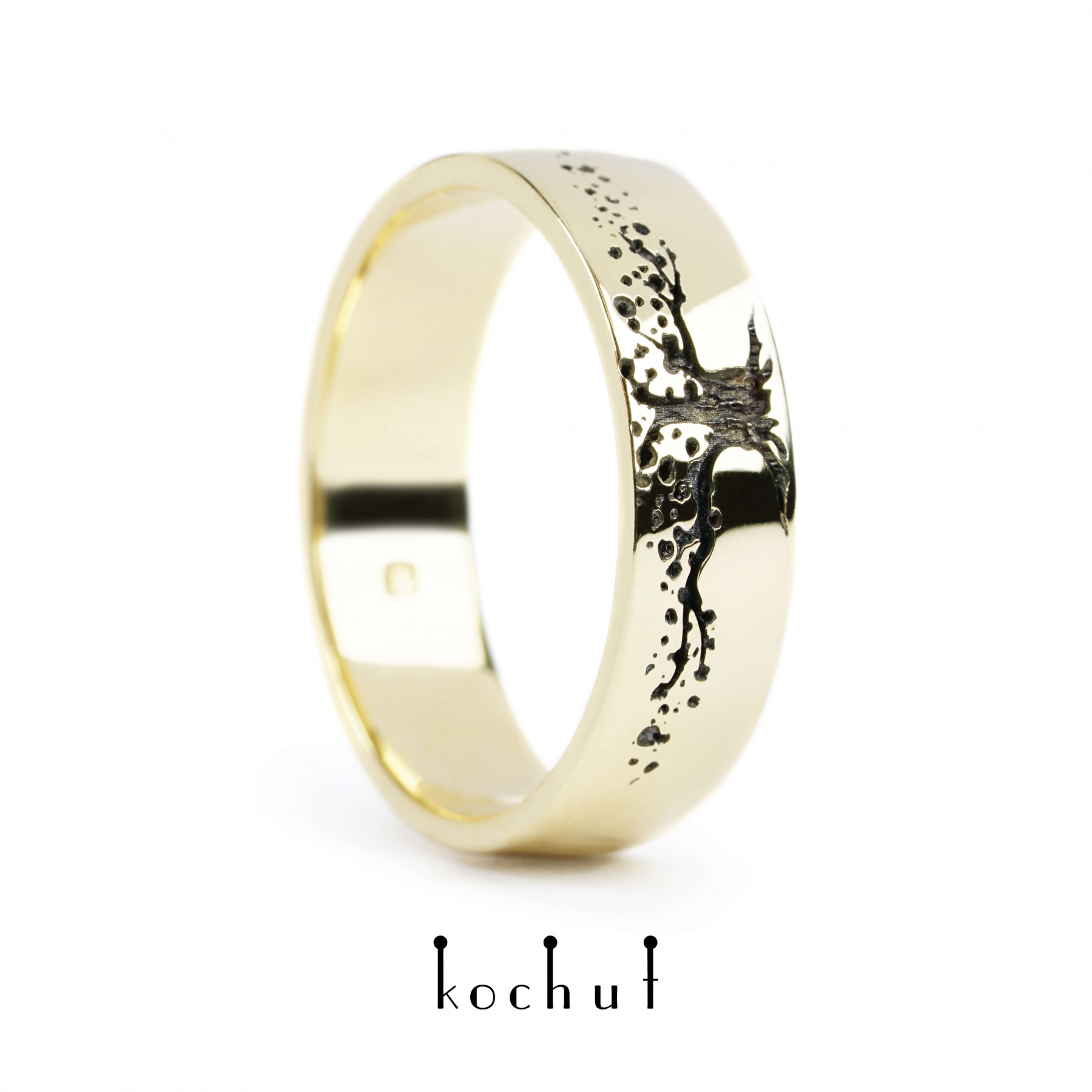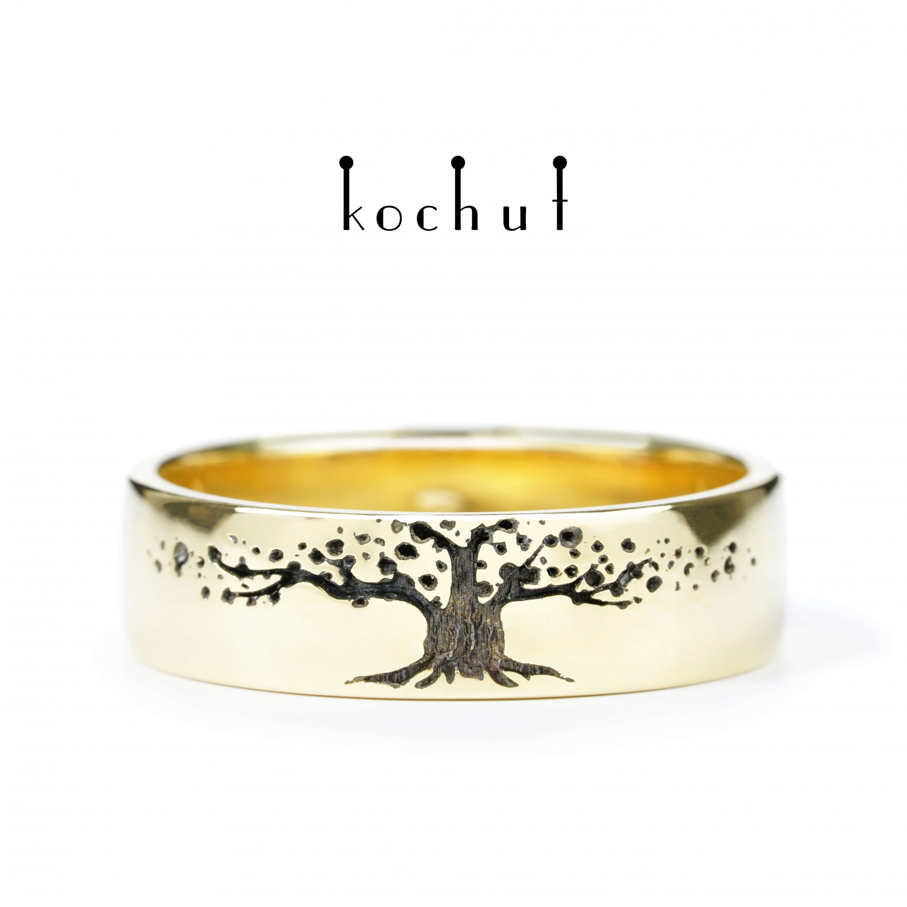 The symbol of a tree is mentioned often in mythology and religion. It is called the world, paradise or space tree. It’s referred to paradise, God’s providence, development of life on Earth. It may seem to be just a tree with fragile twigs looking at the skies. A wise creature with bark covered with wrinkles and wounds. The child of nature, air and cosmic magic. But in fact the Tree of life is a profound metaphor that determines the approach towards each other through entire life in the evolutionary context.Charles Darwin wrote about this tree in his «Origin of Species». He believed that evolution is a «tree of life», which fills with its dead and broken branches the crust of the earth, and covers the surface with its ever branching and beautiful ramifications.There are around 8 billion different worlds walking on the planet every day. All the people around us have completely different views on the world, life and society. And every thought is the result of thousands of evolutionary chains. Each of them is a sprout of the Tree of life, and this is exactly what we see in it. Awareness of the majesty and beauty of life on Earth. Love for humanity and the desire to live together in full harmony. These wedding rings are from our collection directly related to the Tree of life. It played a significant role in our craftsmanship, giving it the features of nature, external expression and beauty of lines. The rings are unusual and, let’s say, quite uncommon. You won’t make strong family ties solely on emotions. But common goals, strong faith in each other, appreciation of the relationship, reliability and support — these are the whales, holding the pillars of a successful marriage. And the Tree of life symbolizes this aspect of the life of lovers. The charming «Tree of life» wedding rings are made yellow gold. They will give you its best physical and spiritual shell. The indicative price is for ONE wedding ring. The cost may vary depending on the final weight.
